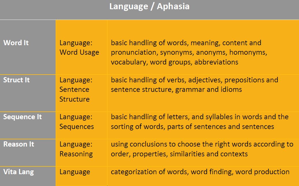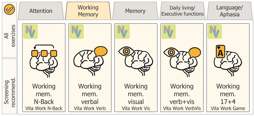 HeadApp assists the therapist in the rehabilitation of cognitive disorders that affect specific aspects of attention, concentration, impulse control, working memory, memory, perception, language, activities of daily living and much more. By solving tasks, brain processes will be activated, and important brain functions will be improved or restored.